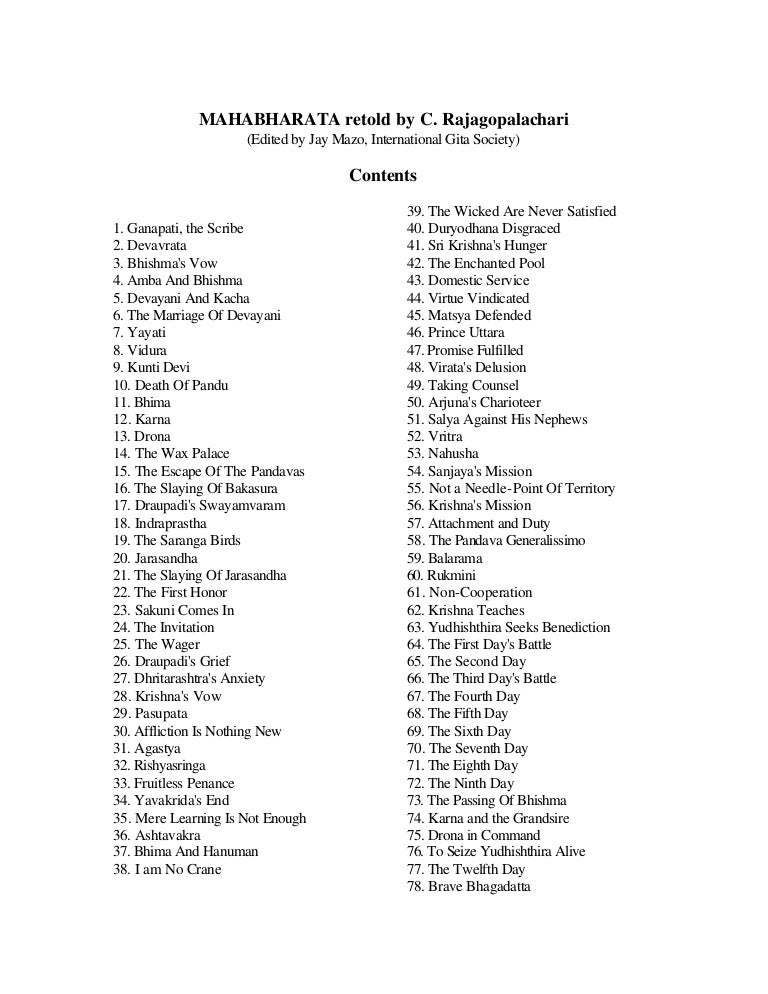 . MAHABHARATA retold by C. Rajagopalachari Edited by Jay Mazo International Gita Society Contents 1. Ad Read Customer Reviews Find Best Sellers.
