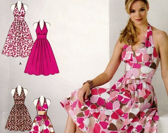 Halter Dress Sun Dress Pattern New Look 6382 Bust 34 Etsy Sundress Pattern Halter Dress 1980s Dresses